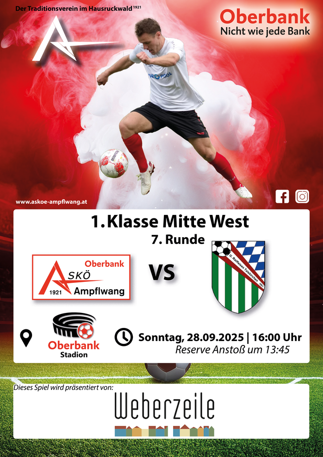 Unsere ASKÖ Oberbank Ampflwang spielt 2025/26 in der 1. Klasse Mittewest!